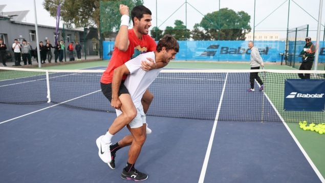 Cobolli es un fijo en las pretemporadas de Alcaraz, les une una amistad desde hace años y son asiduos a la hora de compartir pista de entrenamiento. Lo han hecho en Villena y también en Murcia. El italiano ha explicado en una entrevista a la televisión italiana Rai. «Dos horas de entrenamiento con él parecen 20 minutos. Cuando entrenas con cualquier otro jugador, parecen dos horas… Y, obviamente, me está dando muchos consejos importantes, y aunque no me los dijera, aprendo», explicó.