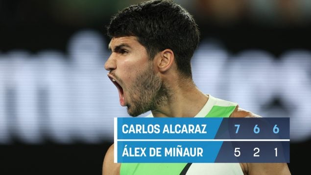 En Australia se repitió el guion. De Miñaur ofreció confianza, potencia en el fondo de pista y buena lectura de partido pese al inicio arrollador de Alcaraz, con break a las primeras de cambio. Lo igualó con un parcial idéntico. Respondió a un golpe al mentón con otro golpe al mentón. Hizo daño con el revés, se posicionó bien con la derecha y atacó la red con agresividad. Lo dicho en las líneas anteriores, en nada es el mejor pero en todo raya un nivel sobresaliente. Alcaraz trató de salir de la encerrona con otro break, pero De Miñaur lo devolvió de inmediato. ‘Aquí estoy, te va a costar’, debió pensar el australiano.