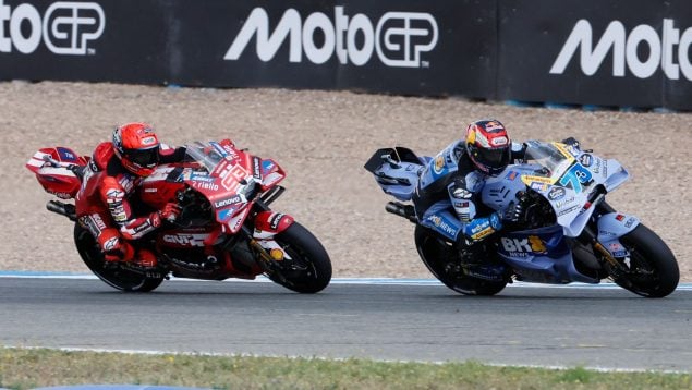 Sobre su carrera, el de Gresini lamentó la caída porque tenía la victoria en la mano: «Totalmente, lo que pudo ser y no fue. Una pena, una lástima con el feeling que teníamos ayer en seco. En mojado, he salvado bastante bien los muebles en la Q2 y, luego, en carrera, he salido bastante bien, he podido remontar y, al final, cuando te pones a liderar en esas condiciones, quizá no era lo más inteligente, pero era lo que yo creía que era lo mejor, porque hacía tres vueltas y el que iba liderando es el que se lo tiene que tomar con más precaución, pero Marc, en ese momento, veía que yo tenía un poquito más y nada. Hoy ha sido todo corazón, quizá ha faltado un poquito de cabeza en algún momento, pero lo he intentado hasta el final y ya está. Cuando se intenta, cuando te vas tranquilo a dormir, eso es lo más importante».