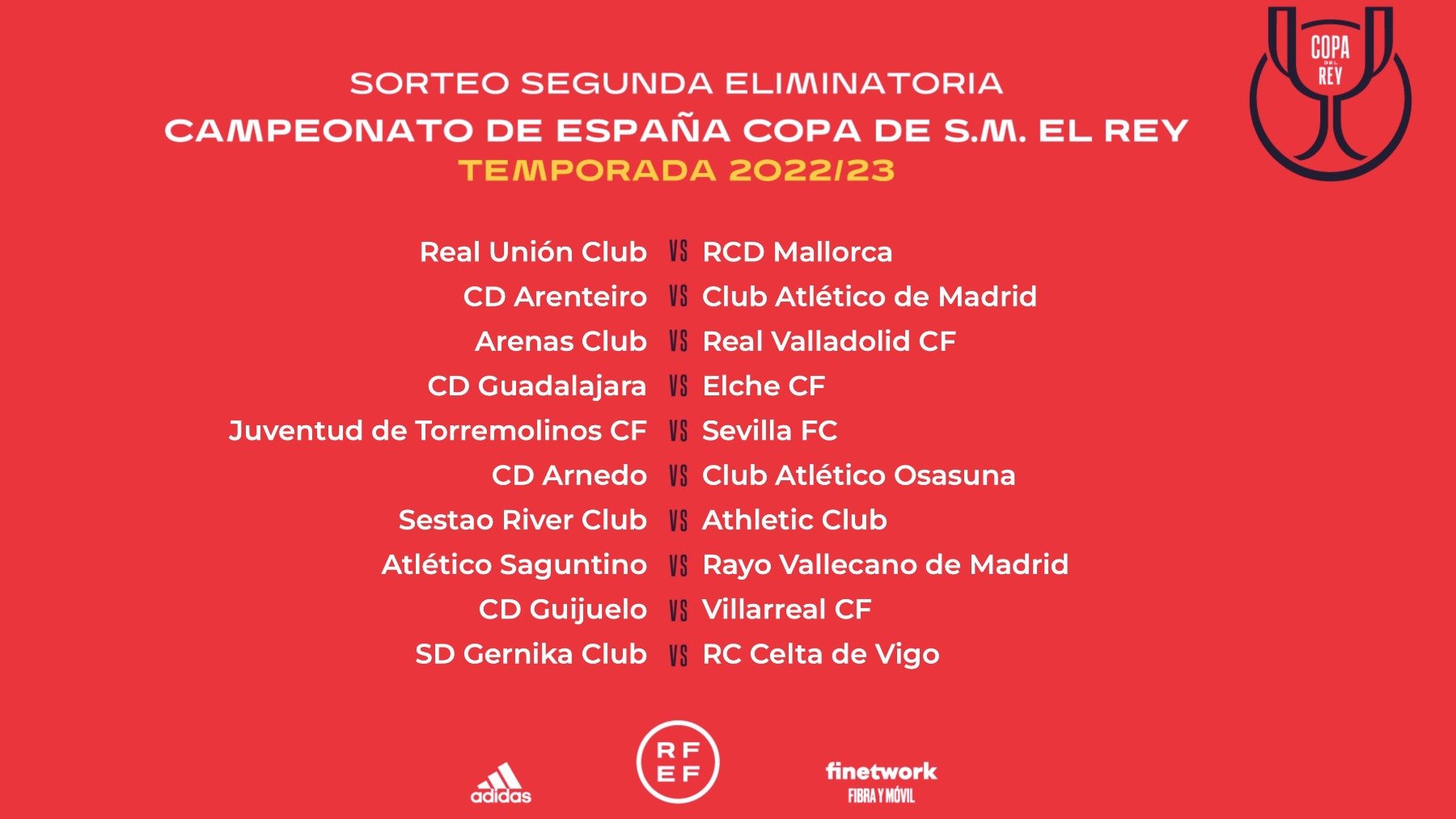 Los otros dos grandes beneficiados han sido el Juventud de Torremolinos y el Sestao River, que se enfrentarán a Sevilla y Athletic respectivamente. El sorteo ha regalado dos derbis en la segunda ronda del campeonato, uno andaluz y otro vasco. Los de Torremolinos vencieron al Huesca en la tanda de penaltis, y el Sestao River se deshizo del Racing de Ferrol. Sus triunfos han obtenido premio y ahora recibirán a dos de los grandes conjuntos de la Liga Santander.