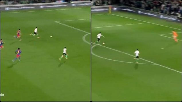 Así fue el mano a mano fallado y los dos goles anulados a Manex Lozano que perdonaron al Barcelona