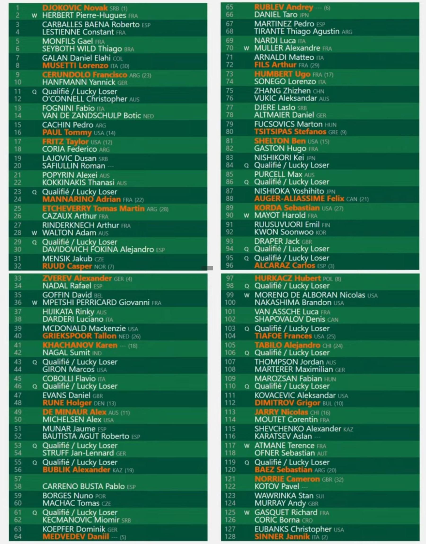 El cuadro final ATP de Roland Garros 2024