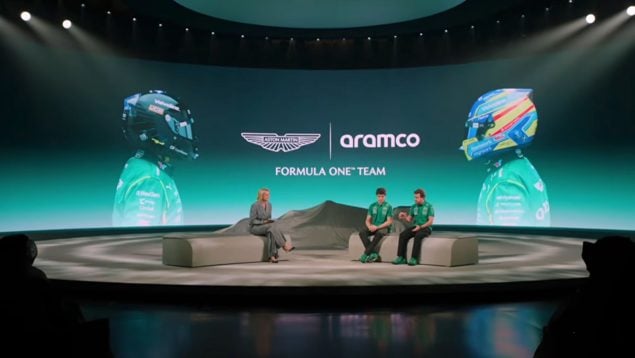 El directo del equipo inglés se cayó justo cuando Fernando y Lance Stroll salían al escenario de la sede de Aramco en Arabia Saudí