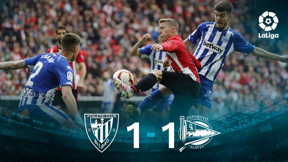 Athletic y Alavés firmaron tablas en San Mamés. Los dos equipos vascos empataron a uno en un encuentro tremendamente igualado y muy disputado. Beñat adelantó a los de Bilbao con un gol de falta en el minuto 41, pero antes del descanso Borja Bastón fue capaz de hacer una igualada que sería definitiva.