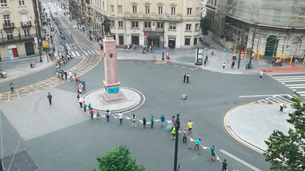 «El Athletic Club se une a la reivindicación social del derecho a decidir. @GureEskuDago #GizaKatea #BasquesDecide», ha escrito el club vasco a través de la red social Twitter, adjuntando una fotografía de la cadena humana a su paso por la capital vizcaína.