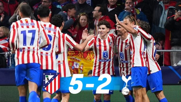Cuando la grada afina los acordes de la garganta, el Atlético es rock and roll. Siempre ha pasado. Ocurría en el caduco Calderón y sucede ahora en el renovado Metropolitano. Y cuando se produce esa simbiosis, no hay quien lo pare. No pudo el líder de la Liga, el Barcelona, menos aún iba a poder el 16º de Inglaterra. El Tottenham se hundió y se vio superado por el marco de su delicada situación deportiva y el escenario, un Metropolitano inflamable donde los haya. De ahí se fueron goleados Real Madrid, Barcelona… Y ahora el Tottenham (5-2) fue el que recibió el manotazo tras hacerse el harakiri con tres errores garrafales y dos tantos más.