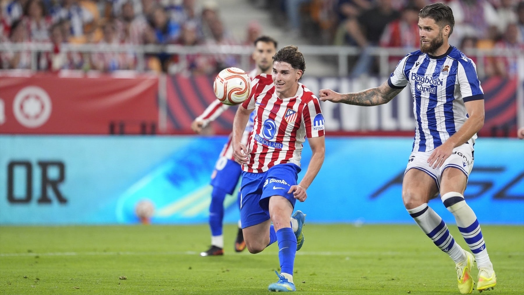Vuelve a rodar el balón en La Cartuja. Saca de centro el Atlético.
