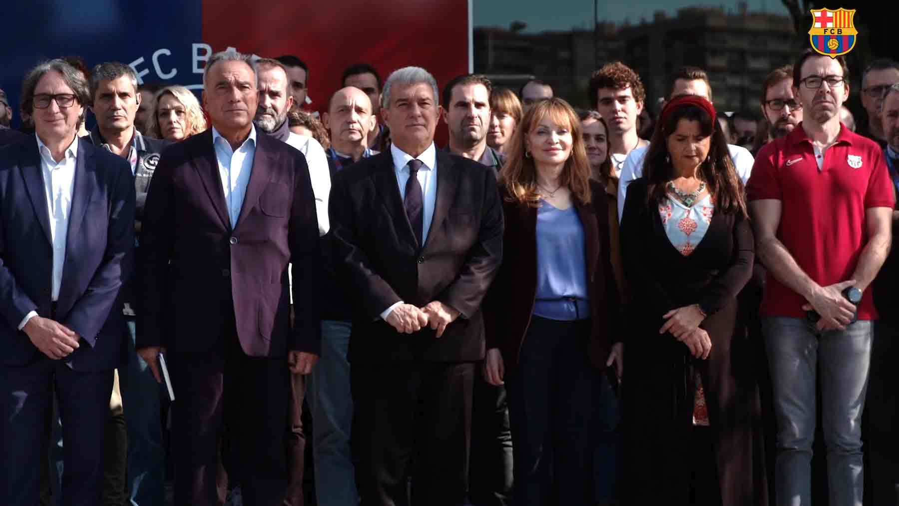 Con Joan Laporta a la cabeza, empleados del club, así como también miembros de la Junta Directiva, se han puesto delante de las oficinas del Barça para guardar un respetuoso «acto de solidaridad». Así han llamado a esta concentración que viene en la línea de lo que pidió CEOE, CEPYME y ATA, que fue parar durante 10 minutos este viernes la actividad en señal de respeto a las víctimas de la DANA.