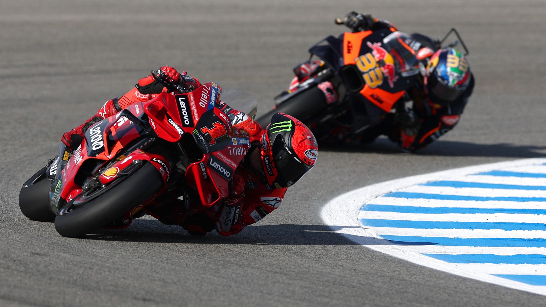 Cerca del final, Pecco puso el modo persecución y terminó cazando a Binder. El sudafricano resistió como pudo pero la Ducati le pasó como un avión en el interior de la 13 a cuatro vueltas del final. El vigente campeón comenzó a tirar tras adelantar a la KTM pero Binder aguantaba y no conseguía irse. En la recta se iba el de Ducati pero en las curvas se acercaba. El ganador de la sprint lo intentó en la zona de Peluqui-Ángel Nieto y en la curva Jorge Lorenzo pero se le movió un poco la moto y Bagnaia suma su segunda victoria del año. Miller acabó tercero, cuarto Martín y quinto Aleix Espargaró.