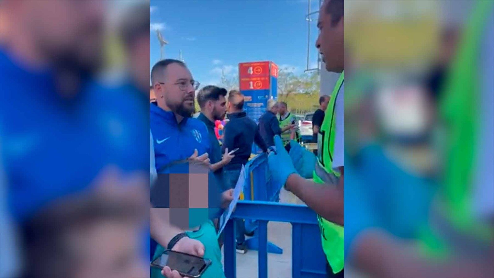 Los miembros de seguridad instan a los seguidores a esperar al coordinador para expresarle sus quejas y pedirle explicaciones, ya que aseguran que ellos sólo cumplen órdenes. Los aficionados no entienden nada, tienen su entrada pero no pueden acceder por llevar indumentaria del Sabadell.