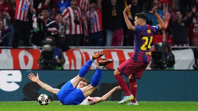El Barcelona volvió a tropezar con la misma piedra por enésima vez. Si en la ida de los cuartos de final de la Champions League fue Pau Cubarsí quien dejó al equipo azulgrana con un jugador menos a los 44 minutos por derribar a Giuliano Simeone, en el partido de vuelta ha sido Eric García el que ha visto la tarjeta roja en el 79′ por una acción similar con Sörloth.