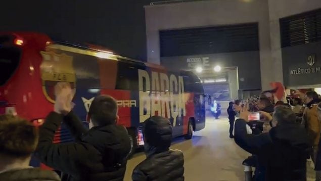 El autobús del Barcelona llegó al estadio Metropolitano como si estuviera en casa. Aplaudidos por decenas de aficionados, los culés parecían llegar al Camp Nou. Sin insultos, sin gritos en contra… no se encontró nada mal en ese momento el Barcelona en su llegada al estadio rojiblanco, donde disputa este jueves el partido de ida de semifinales de Copa del Rey.