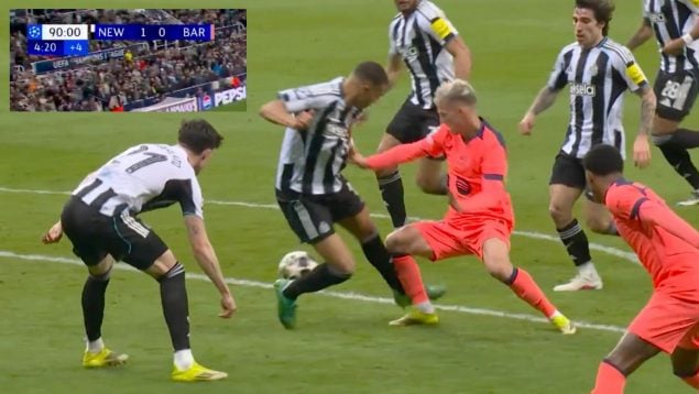 Al Barcelona le señalaron el penalti que le permitió empatar en Newcastle en el 94:20, cuando se habían añadido cuatro minutos