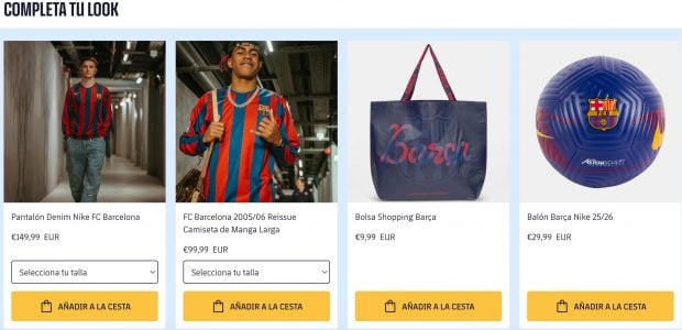 En la página web del club también se pueden encontrar otros complementos que tampoco son baratos, como pueden ser los pantalones «Denim Nike FC Barcelona», que también lucieron los jugadores a su llegada al Camp Nou. Estos pantalones, que sirven para completar el look con la camiseta retro de Ronaldinho, tienen un precio de nada más y nada menos que 149,99 euros (la talla S ya está agotada). En este apartado de la web también se puede encontrar la «FC Barcelona 2005/06 Reissue camiseta de manga larga» por un precio de 99,99 euros. Esta camiseta no lleva el dorsal de Ronaldinho en la espalda y también está agotada.