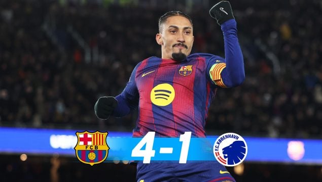 El partido ya estaba de cara para el Barcelona. Y más que se puso en el minuto 69 gracias a que el colegiado francés pitó un penalti inexistente sobre Lewandowski. El delantero polaco remató al aire y el árbitro picó. Tampoco el VAR entró a revisarlo y fue el jaque mate contra el Copenhague. Lo marcó Raphinha para hacer el 3-1 y sentenciar el partido. El Top-8 empezaba a ser una realidad para el equipo culé.