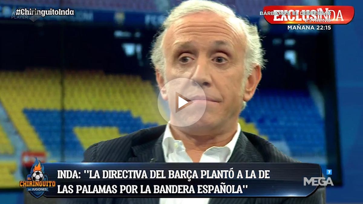El director de OKDIARIO, Eduardo Inda, desveló en exclusiva en El Chiringuito de Jugones las intenciones del Barcelona como venganza por lucir la bandera de España en el pecho. «Ha habido doble vendetta. Me dicen que se canceló la comida con la Junta Directiva de Las Palmas en respuesta de que se portase esa camiseta. En segundo lugar, el Barcelona dice que se la van a devolver, no sólo con el almuerzo sino que existe la posibilidad de que Sergi Samper se vuelva a Barcelona y le quiten la cesión a la Unión Deportiva Las Palmas en el mercado de invierno». Para completar la información, Inda comentó que el Barcelona había tomado la decisión «en respuesta de que Las Palmas hubiera llevado libérrimamente la bandera de la nación».