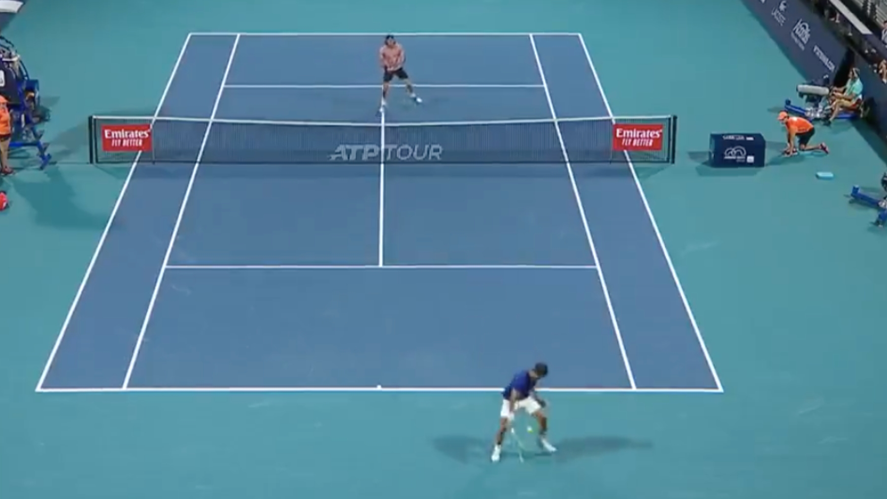 Uno de esos momentos mágicos se produjo en el tercer juego de este duelo de octavos de final. «¿La jugada del año?», se pregunta la propia ATP en su web oficial, y no es para menos. Alcaraz corrió la pista hacia atrás para enganchar la pelota por debajo de las piernas y firmar un globo milimétrico que le permitió ganar el punto. Ver para creer. El futuro del tenis ya está aquí.