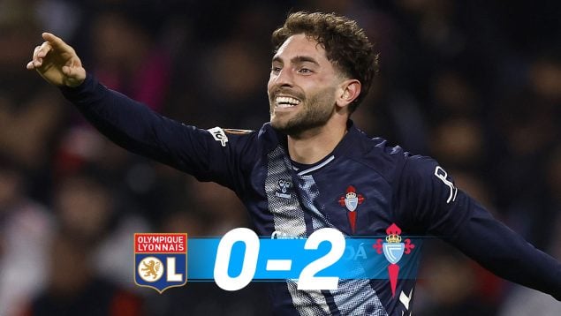 Aparte de un cabezazo sin premio de Corentin Tolisso, el conjunto local no incordió al portero de un Celta que al contragolpe selló su triunfo. En el tiempo añadido, y justo después de que Iago Aspas hubiera intentado una vaselina, Jutglá encontró hueco para correr casi en solitario hasta el área contraria y marcar el 0-2 definitivo con un zurdazo raso.