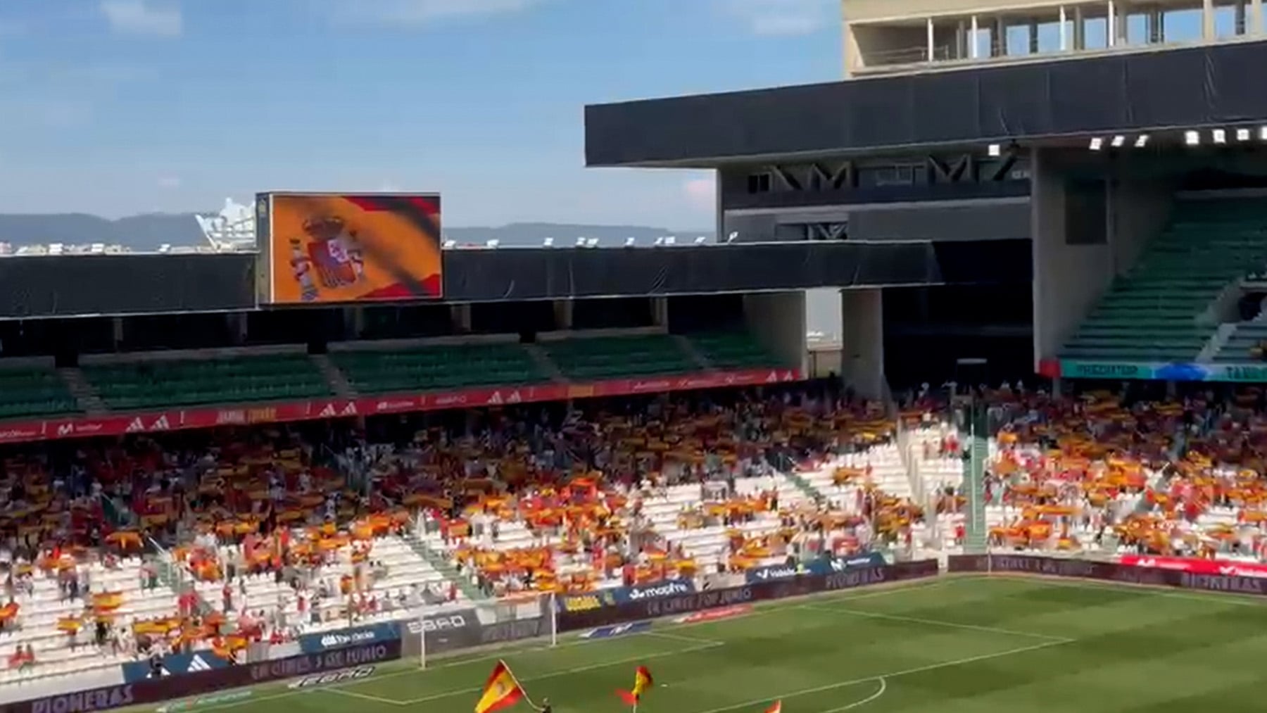 Desafiando al calor, a los 30ºC que se daban en la ciudad andaluza, y al horario de las 16:00 horas, fueron más de 12.000 espectadores los que acudieron a ver el partido trascendental para la Selección. España estaba obligada a ganar y a golear para poder resolver aún su clasificación para el Mundial de forma satisfactoria, evitando la repesca. Como siempre, la afición respondió. Es verdad que esta vez no lo hizo con un récord como el que se registró en este mismo estadio en octubre de 2023, pero sí que presentaba media entrada.