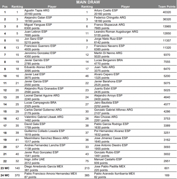 En el cuadro masculino, las parejas formadas por Agustín Tapia y Arturo Coello, Alejandro Galán y Federico Chingotto, Miguel Yanguas y Franco Stupaczuk y Juan Lebrón y Leandro Roman Augsburger son las grandes favoritas para hacerse con el triunfo en el tercer torneo de este 2026.