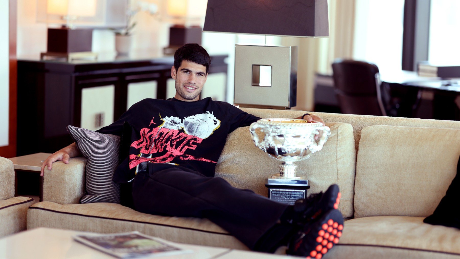 Alcaraz se convirtió en Australia en el tenista más joven de siempre en conseguir los cuatro Grand Slam. Sonrío dentro de la pista porque sonrío fuera. Lo primero no ocurre sin lo segundo. Durante su estancia en Australia ha disfrutado a su manera. Jugó a las cartas con su equipo, al popular juego de mesa The Mind, que consiste en descartar cartas numeradas del 1 al 100 en orden ascendente sin hablar con el resto de participantes, se vistió de Gladiador con una careta y actuó como botones del hotel Crown Towers de Melbourne.