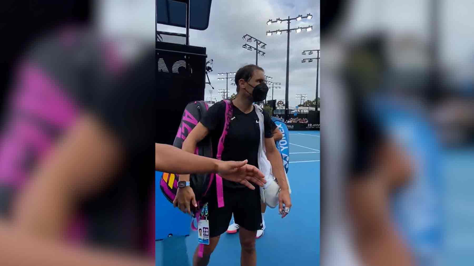 Rafa Nadal se disculpó con los aficionados presentes en su entrenamiento en Melbourne por no poder firmarles un autógrafo, ya que debe seguir los protocolos sanitarios de Australia