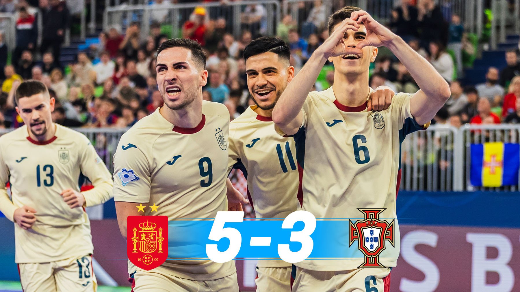 España es campeona de Europa de fútbol sala diez años después. Y lo es a lo grande, derrotando en la final a la Portugal (5-3) campeona de las dos últimas ediciones. La selección española, la más laureada de todas en este deporte, vuelve a lo más alto tras un torneo perfecto (todos los partidos ganados) y tras ganar una final espectacular de un nivel excelso.