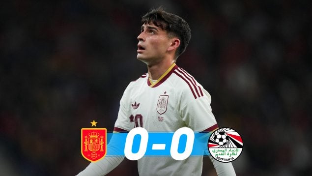 Nació el partido con vértigo y sin dueño como una ventosidad en un ascensor. No se arrugó Egipto, valiente en su propuesta y con la pelota. España aún trataba de tomarle el pulso al partido y buscaba alguien al volante sin Zubimendi, Rodri ni Pedri. Los nuestros comenzaron a presionar arriba en la salida de balón de los egipcios. Apretaba Cornellá y se encendía las pocas veces que Lamine cogía la pelota. En una conexión precisamente entre el crack del Barça y Dani Olmo llegó la ocasión para Ferran Torres, que se topó con un zaguero egipcio.