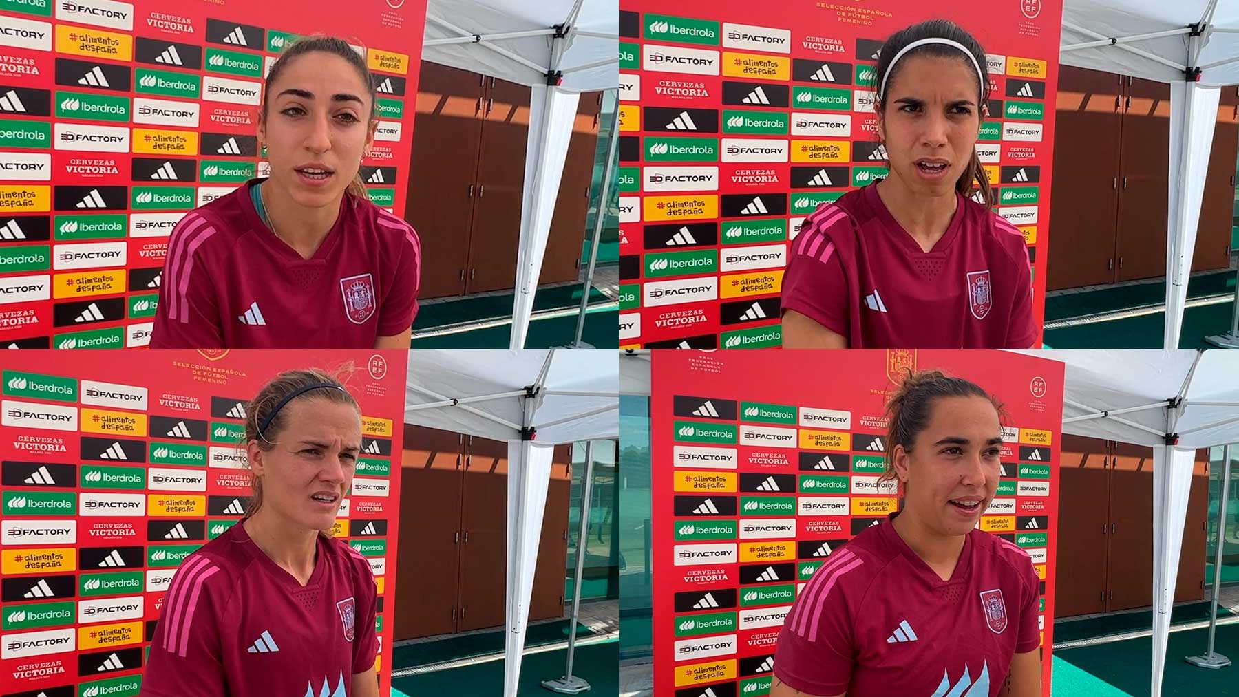 También comparecieron dos jugadoras del Real Madrid, Rocío Gálvez y Olga Carmona. En este caso, sí que se mantuvieron más cautas, aunque ninguna esconde la ilusión de poder hacerse con el título. «Vamos allí a ganar», reconocía Gálvez, aunque hablaba también del nivel del resto de equipos: «Hay selecciones muy complicadas y se verá partido a partido si podemos». En el caso de Olga, señaló que el objetivo es centrarse «en la fase de grupos» y, después, «ir paso a paso».