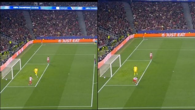Musso saca de puerta y se la pasa a Pubill. El defensa del Atlético entiende que todavía no está el balón en juego y la coge con la mano para sacar de nuevo. Kovacs interpreta lo mismo que Pubill y no pita nada, mientras los jugadores y el banquillo del Barcelona explota y pide penalti. La pelota sale por banda y no hay revisión.