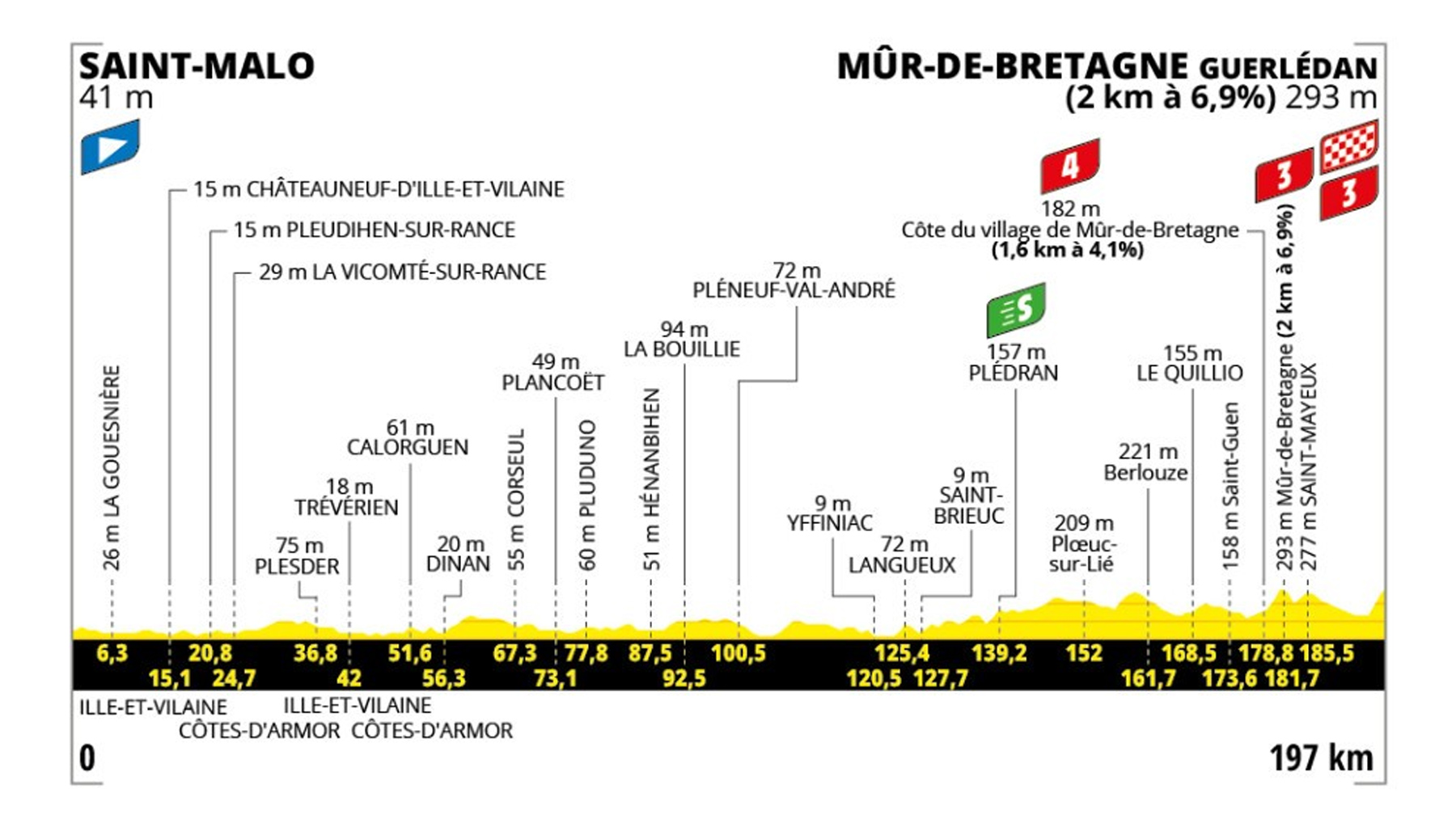 La etapa 7 del Tour de Francia comenzará en Saint Malo y terminará en Mur de Bretagne Guerlédan