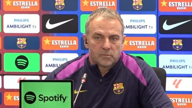 Hansi Flick compareció desde la sala de prensa de la Ciudad Deportiva Joan Gamper para atender a los medios de comunicación en la previa de este Atlético de Madrid-Barcelona de Liga que será el primero de los tres duelos que medirán a estos dos equipos durante los primeros 15 días del mes de abril.