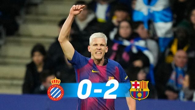 La calidad individual que tiene el Barcelona gana partidos. También cuando no mereces ganar. Y eso hizo el equipo de Flick en el minuto 84. Apareció Dani Olmo en la esquina del área y con remate perfecto la puso en la escuadra. Era el 0-1 para el Barça en el derbi catalán tras merecer ir por debajo en el marcador. Jarro de agua fría para el cuadro perico y el Barcelona sacaba tres puntos en un partido muy flojo.
