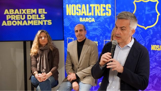 El precandidato también se comprometió a que, en caso de ganar las elecciones del 15 de marzo, la temporada 2026-2027 mantendrá los precios de los abonos que tenía el Camp Nou antes del traslado a Montjuic por el inicio de las obras del Espai Barça.