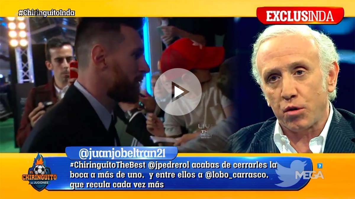 Inda siguió informando sobre la renovación de Messi con el Barcelona y se centró en la mala relación del astro argentino con el presidente del club, Josep María Bartomeu. «Dimos con detalle el nuevo contrato de Messi con el Barcelona y dijimos que se firmaría en junio. Pero se ha ido demorando por la mala no, malísima tampoco, relación que tiene Leo con el presidente. No quiere hacerse la foto con Bartomeu. Están en ese tira y afloja. Messi quiere una renovación clandestina. En enero será libre y a cualquier equipo le costaría cero euros».