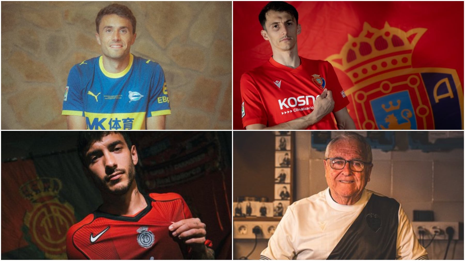 El Levante sí jugará de blanco y negro, en recuerdo a su fundación, mientras que el Mallorca tira de la estética Nike Total 90 de hace varias décadas.La de Osasuna es muy minimalista y la del Oviedo tiene detalles de su 91 aniversario, así como Real Sociedad y Sevilla usan modelos e iconos de otra época para rediseñar su concepto retro. Valencia y Villarreal rompen con diseños distintivos, de épocas pasadas.