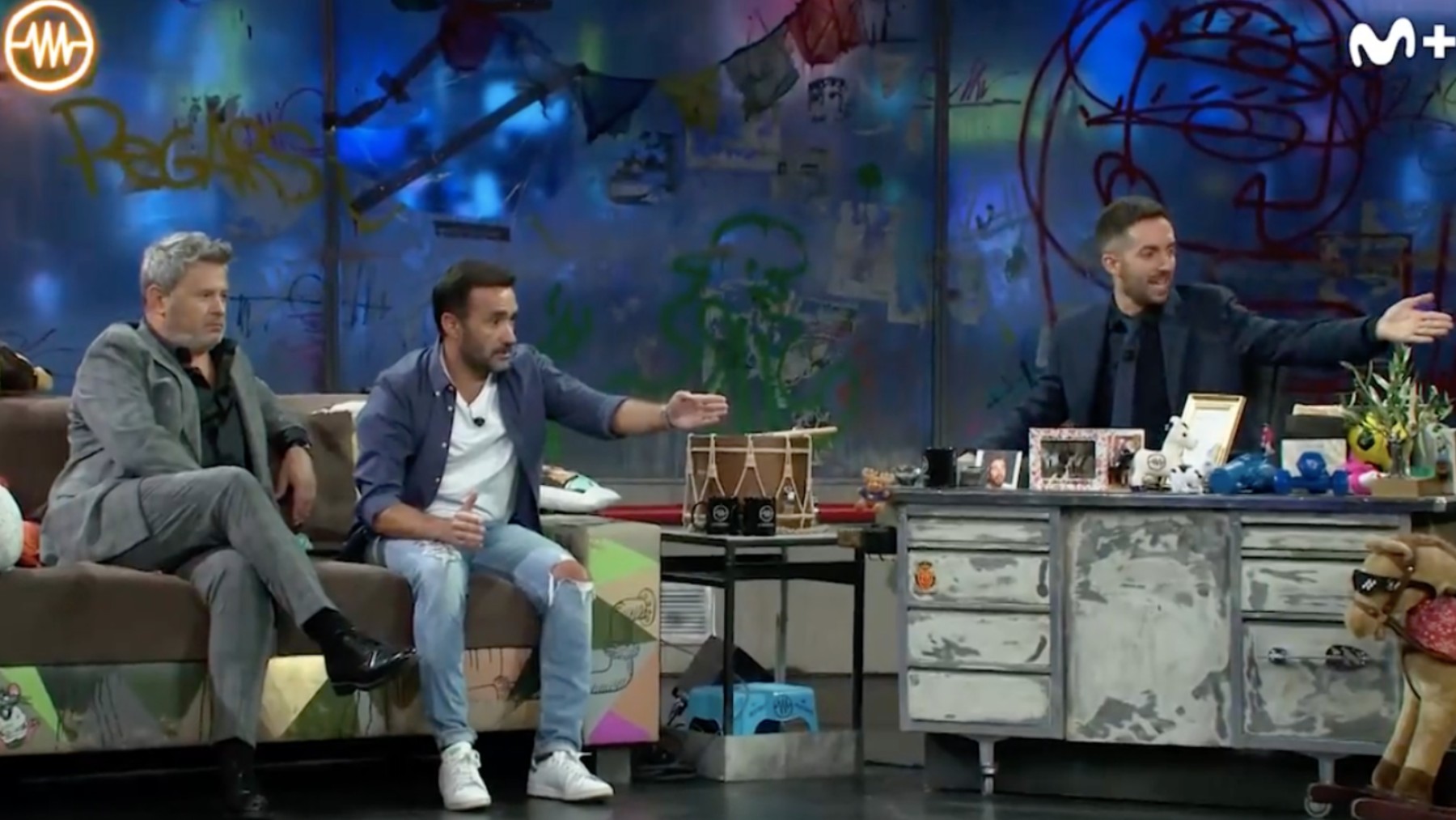Juanma Castaño y Miki Nadal acudieron en la noche de este martes al programa de La Resistencia de Movistar presentado por David Broncano para presentar la segunda temporada de su programa de cocina llamado Cinco Tenedores. El ambiente, como siempre, fue de lo más distendido y gracioso y las bromas no cesaron en toda la entrevista. El presentador de ‘El Partidazo de la COPE» tuvo un pequeño lapsus sobre el curso en el que se encontraban su hijo en el colegio.