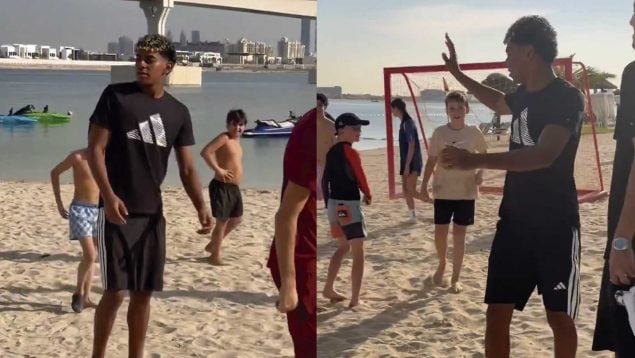 Lamine Yamal no descansa ni en Navidad: se pone a jugar al fútbol con niños en la playa de Dubái