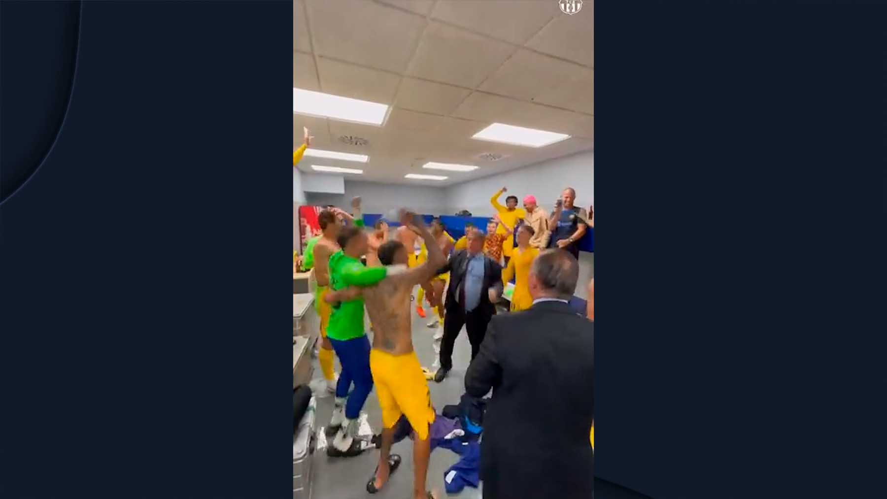 Joan Laporta se convirtió en uno de los protagonista de la celebración del título de Liga conquistado por el Barcelona. El presidente irrumpió en el vestuario del equipo en el campo del Espanyol y desató la euforia bailando y cantando junto con los jugadores.
