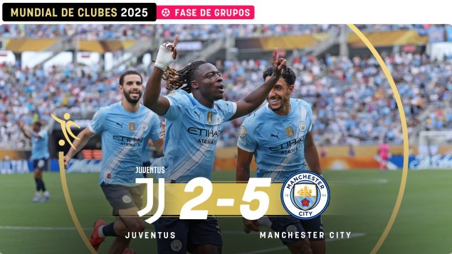 Tres de tres para el Manchester City. Nueve puntos y pleno. El equipo de Pep Guardiola se toma en serio el Mundial de Clubes y no dio tampoco opción este jueves a la Juventus de Turín, a la que humilló (2-5) en el duelo que decidía el primer puesto del grupo G. Esa primera plaza es para el conjunto de Guardiola y esto, en la práctica, significa que evitan al Real Madrid, que también fue primero en su grupo. Los ingleses se medirán al Al Hilal.