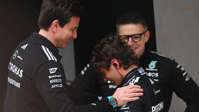 Ahora le va a tocar calmar a un Kimi Antonelli enrachado que suma ya dos victorias. Aunque a Toto Wolff no le hace ninguna gracia que le hablen al piloto de 19 años del campeonato, pese a que se ha puesto líder tras su victoria en Suzuka: «Así es. Ya le van a estar hablando en rueda de prensa sobre el campeonato y no deberían hacer esto. Son dos victorias, quedan 19 carreras y queda mucho tiempo para ganar y perder. Necesita seguir haciendo un buen trabajo».