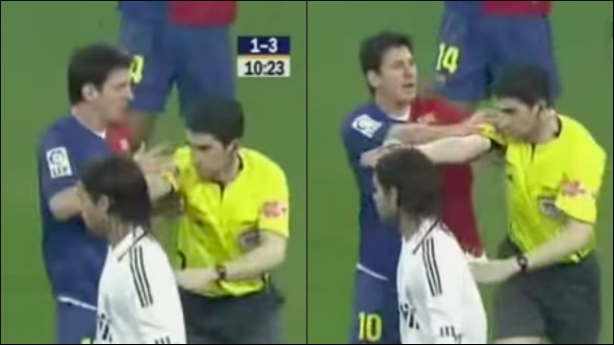 El jugador argentino cometió la misma infracción que Cristiano Ronaldo en el famoso Clásico del 2-6 en el Santiago Bernabéu. Allá por 2009, Messi lideraba la goleada del Barcelona y después de ver como el colegiado del partido, Undiano Mallenco, sancionaba una falta, este le apartó con un empujón leve del que no se vio ni rastro en el acta del aquel partido.