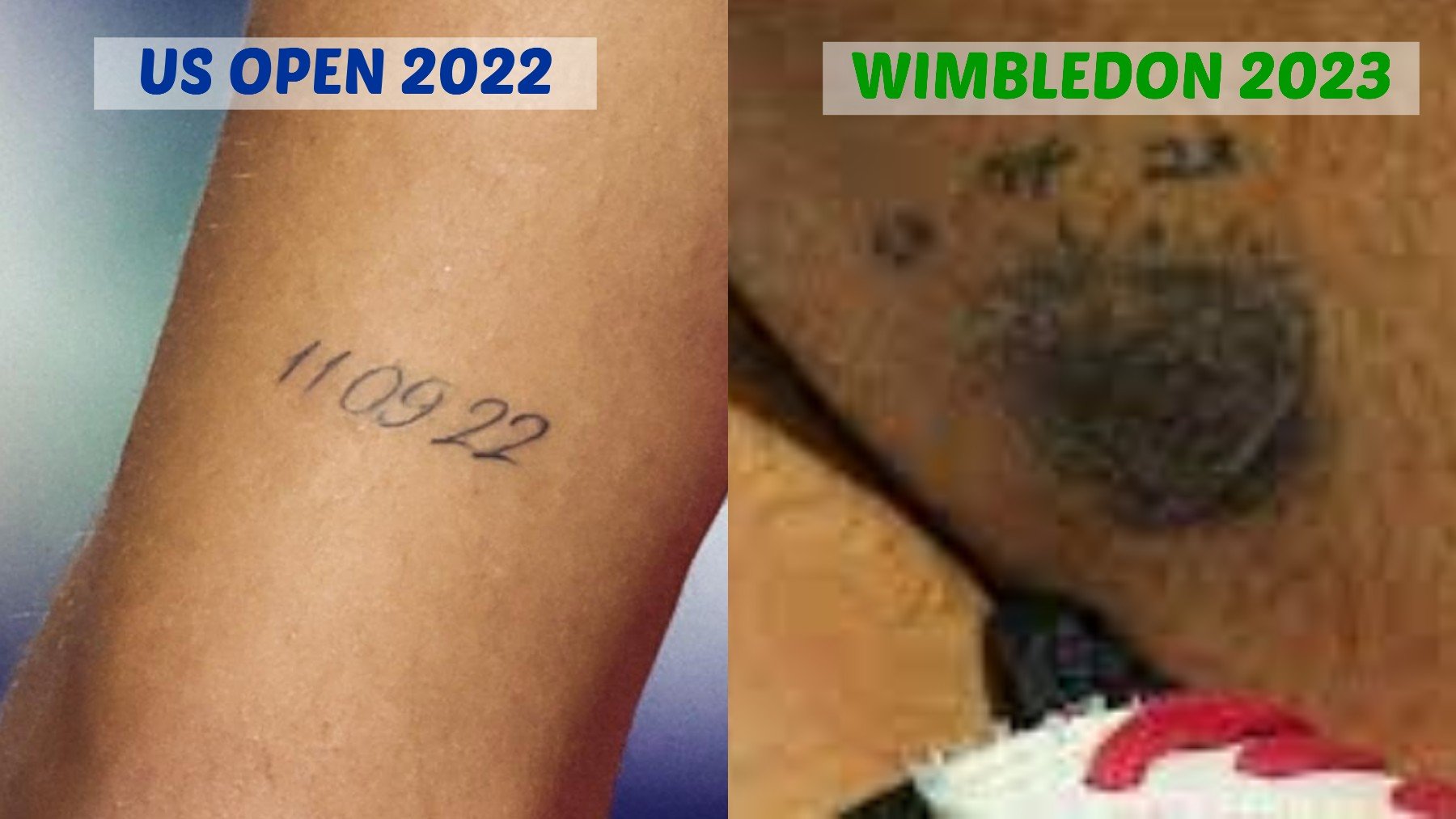 Alcaraz se tatuó primero en homenaje a su abuelo, para meses después pasar a grabar en su piel las marcas del US Open 2022 y de Wimbledon 2023. En el caso del tatuaje de su primer Grand Slam, se encuentra en el brazo izquierdo, por encima del codo, y es el más sencillo de cuantos tiene, con la fecha en la que ganó la final a Casper Ruud, el 11 de septiembre de 2022.