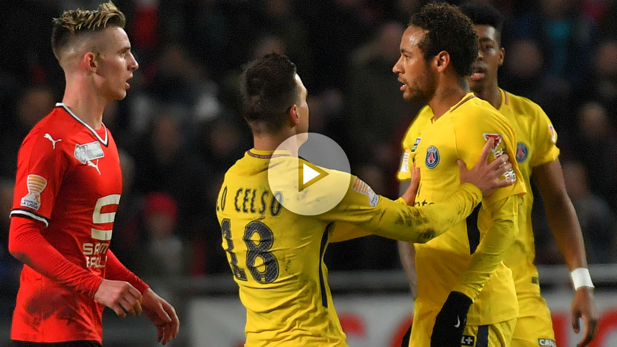 Todo ocurrió cuando el partido estaba prácticamente resuelto con 1-3 en el marcador. Durante todo el duelo, Neymar había recibido varias entradas duras y éste decidió vengarse haciendo todo tipo de filigranas: controles con la espalda, sombreros levantando el balón desde el suelo, todo tipo de regates… Estas acciones enervaron tanto a la afición como los jugadores locales, que estallaron cuando vaciló a un jugador del Rennes sin el balón en juego.