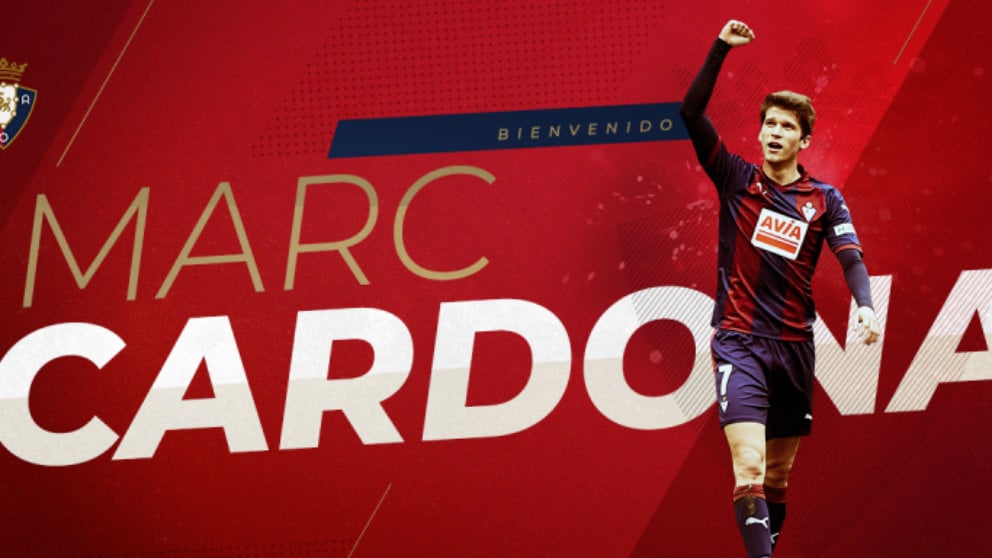 Tal y como contamos en OK Diario, el equipo rojillo ha aprovechado que el Eibar no ha ejercido la opción de compra que tenía sobre el delantero de 23 años para alcanzar un acuerdo con el Barcelona para su traspaso. Según ha hecho público Osasuna a través de un comunicado, Marc Cardona ha firmado hasta 2023 con el conjunto navarro. El futbolista catalán, por el que ha pagado 2,5 millones, tendrá una cláusula de 14.