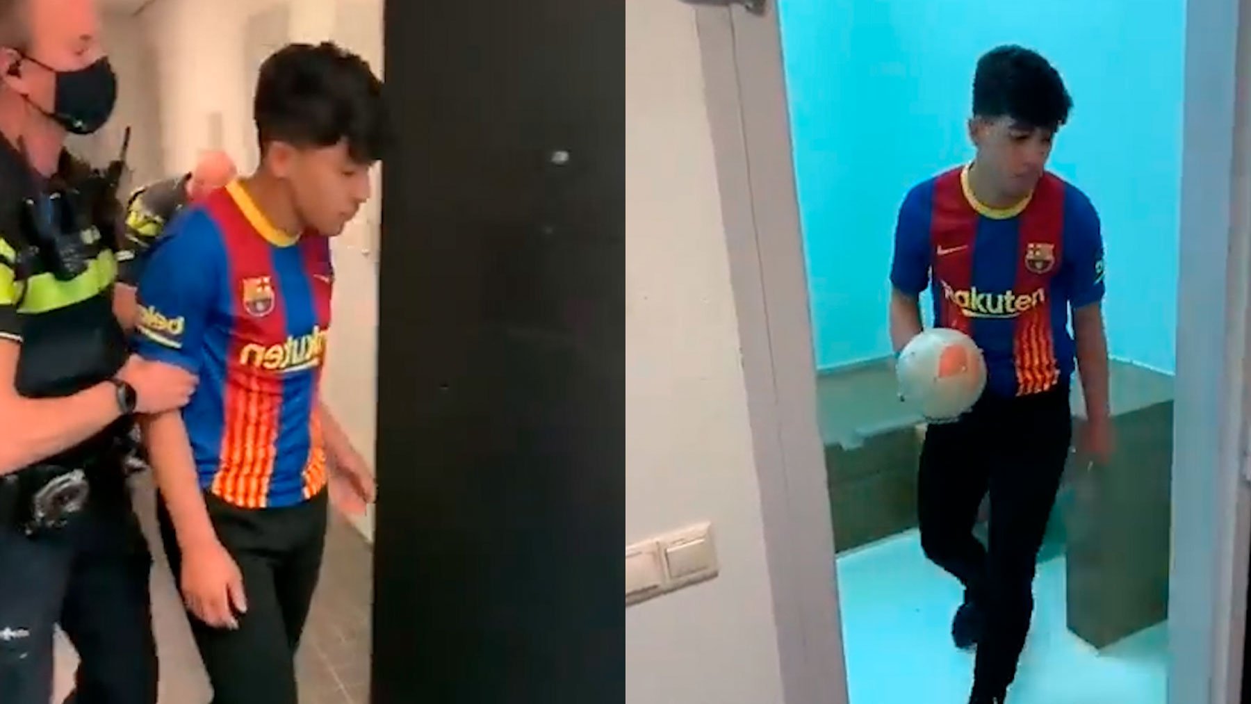 Iban a a sacar del calabozo a este joven aficionado del Barcelona