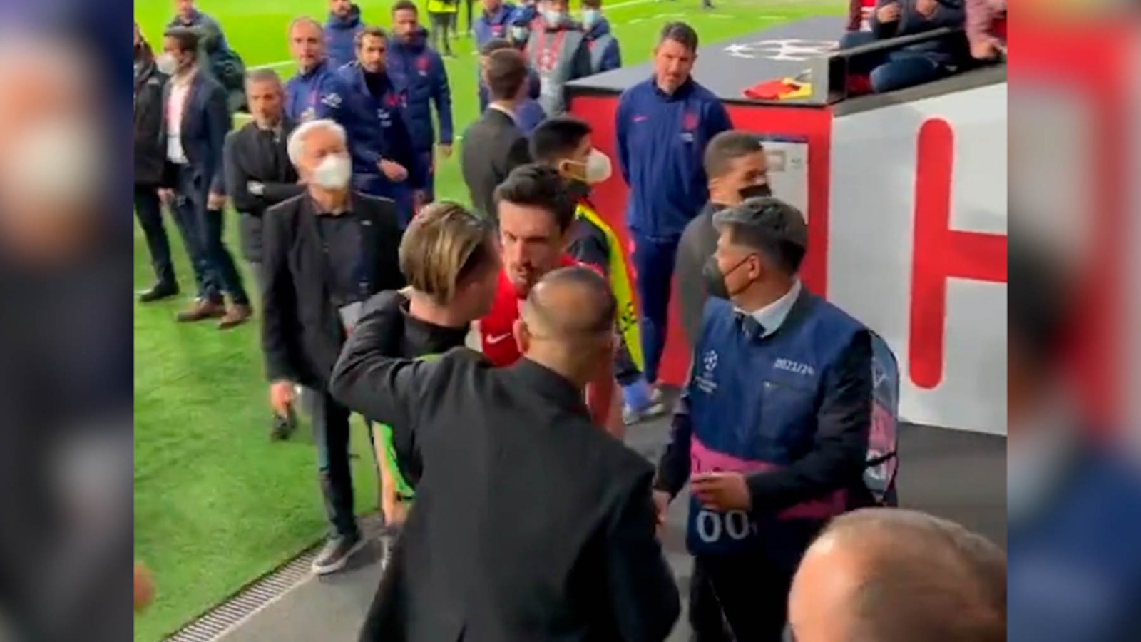 Saltaron chispas entre los jugadores de Atlético y Manchester City al terminar el partido. Ahora ha salido a la luz un nuevo vídeo que muestra el inicio de la trifulca antes de entrar al túnel de vestuarios. Todo comienza con una discusión entre Savic y Grealish. Los dos jugadores ya habían tenido sus más y sus menos en el tramo final del partido, y de camino a los vestuarios se reencuentran mientras Ruben Días aparece para poner paz e intentar que la cosa no llegue a mayores.