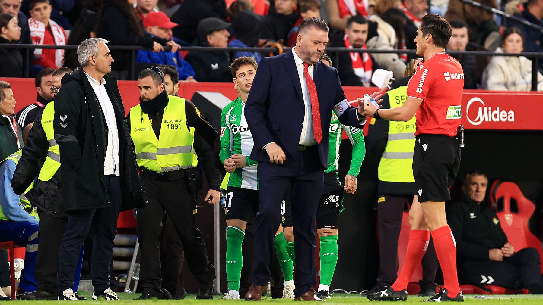 Fue bochornoso todo lo que pasó en el tramo final del derbi sevillano. El partido estaba sentenciado, ganaba 0-2 el Betis con goles de Fornals y Altimira. La grada estaba caliente y empezaron a llover algunos objetos desde la grada. Munuera se acercó al delegado avisó de que si volví a ocurrir pararía el partido.