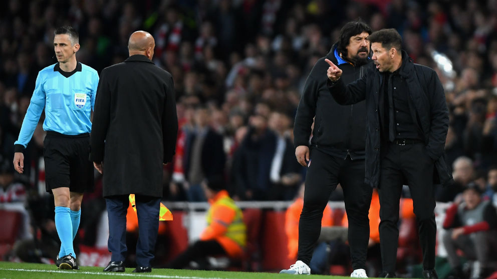 El Cholo Simeone fue expulsado en el minuto 13 del Arsenal – Atlético que terminó con empate a uno en Londres. El entrenador rojiblanco se expone a una sanción de hasta tres partidos, por lo que se podría perder una hipotética final.