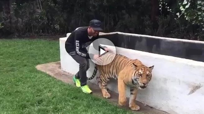 Pese a su peligrosidad, el tricampeón del mundo siempre se ha mostrado muy cariñoso con su mascota. El vídeo lo titula: «Como asustar a un tigre. Mi favorito, Nicole, el tigre!».